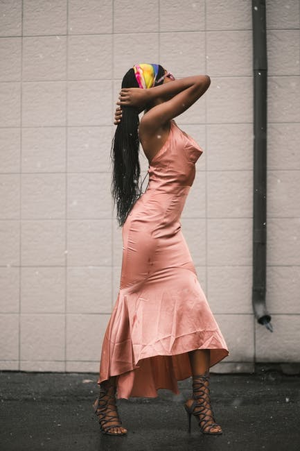 粉红色的裙子举行头发的女人 · 免费素材图片