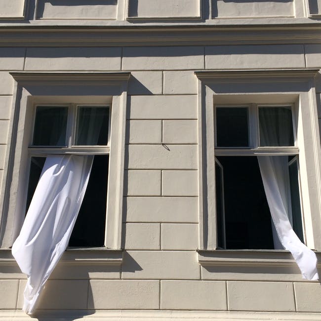 打开的窗户,白色的窗帘 · 免费素材图片
