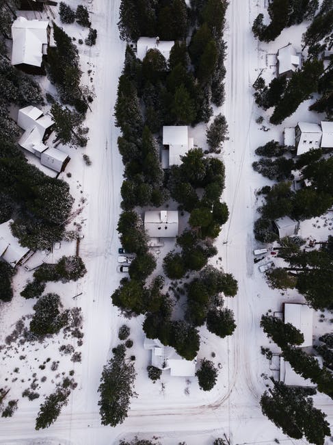 绿树环绕的白雪覆盖的房屋的地域摄影 · 免费素材图片
