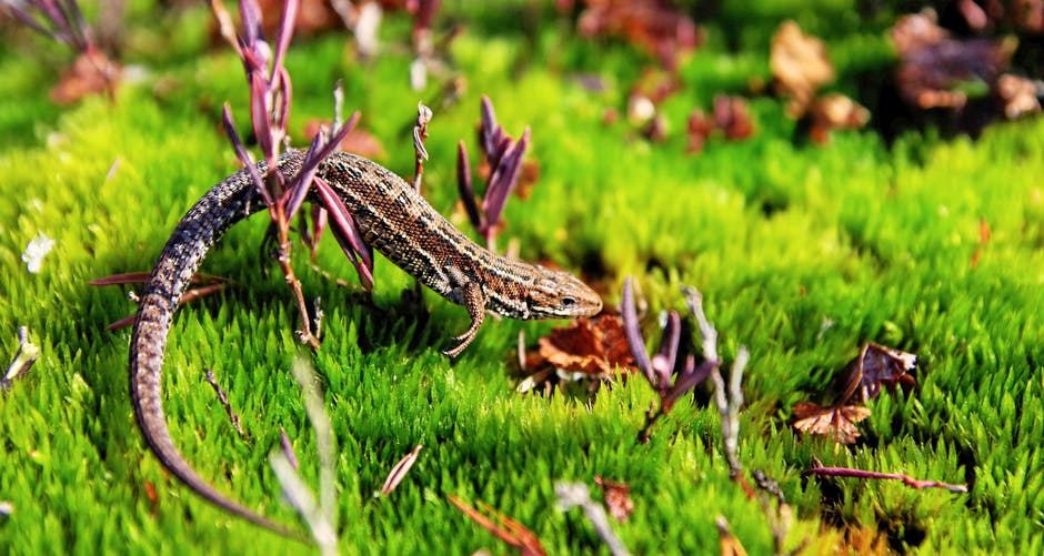 棕色壁虎在绿色的旷野 · 免费素材图片