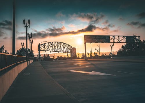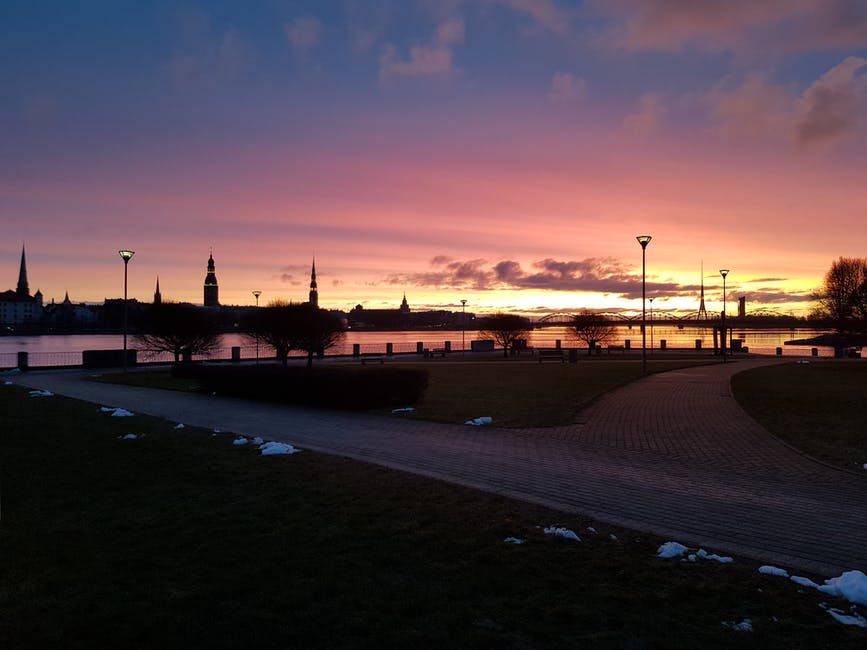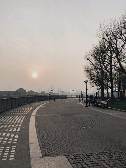 多云的蓝色和橙色的天空,在公园 · 免费素材图片