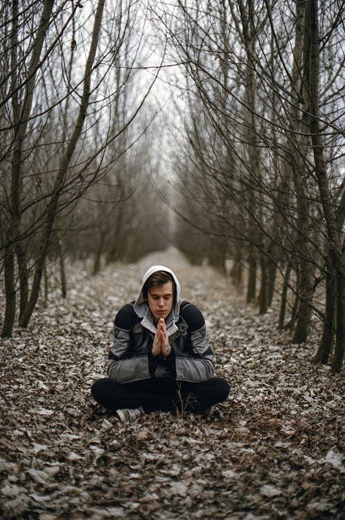 一个男人可以俯瞰秋天树梢的背影 · 免费素材图片