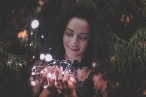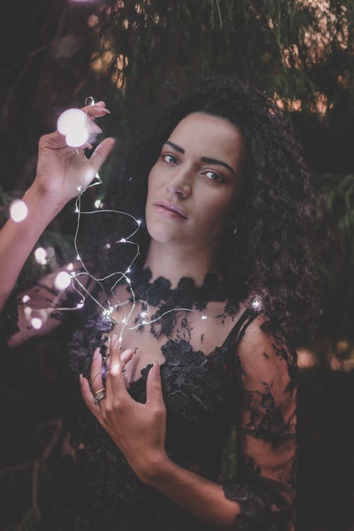一个女人抱着串灯的特写 U摄影 · 免费素材图片