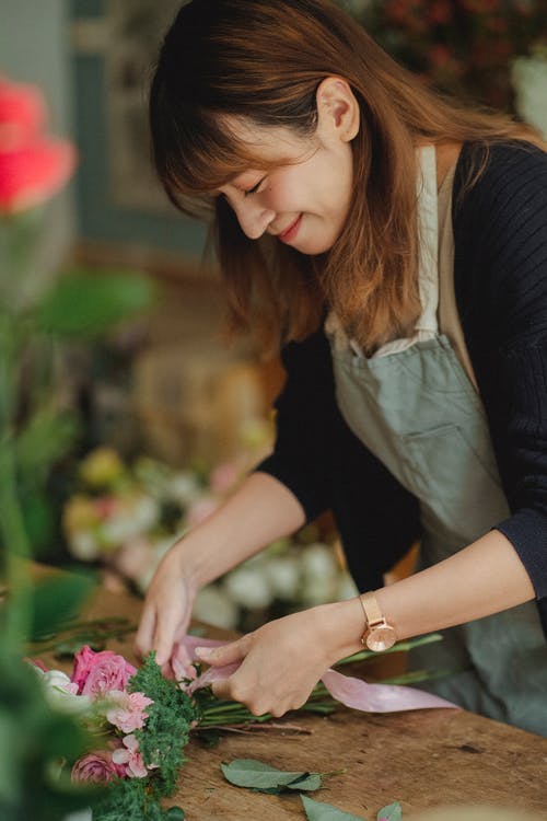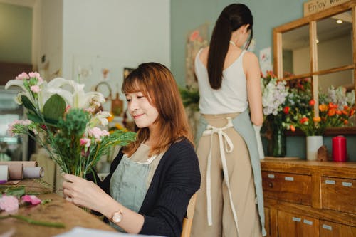 积极的民族花店在花店里制作花束 · 免费素材图片