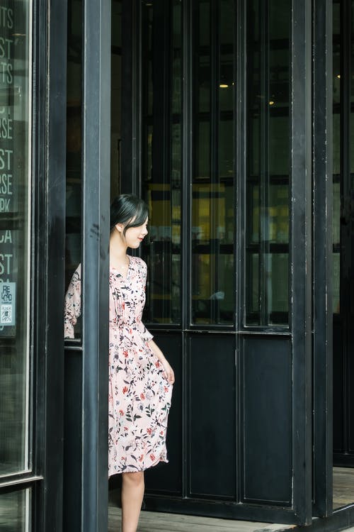 穿黑夹克,打褶的黄色裙子站在棕色地板上的妇女 · 免费素材图片