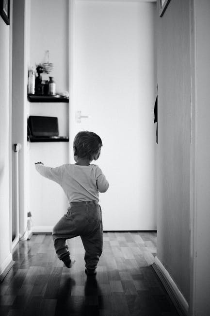 男孩穿着t恤和裤子站在冰箱前的灰度照片 · 免费素材图片