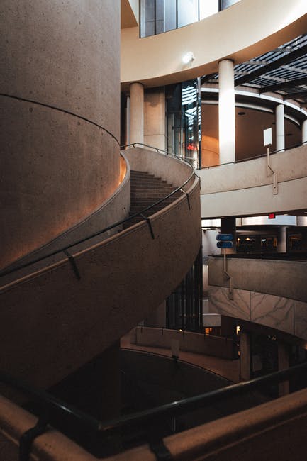 现代酒店宽敞的大厅中的螺旋楼梯 · 免费素材图片