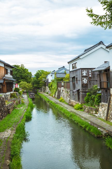 运河在镇上的小型住宅之间流动 · 免费素材图片
