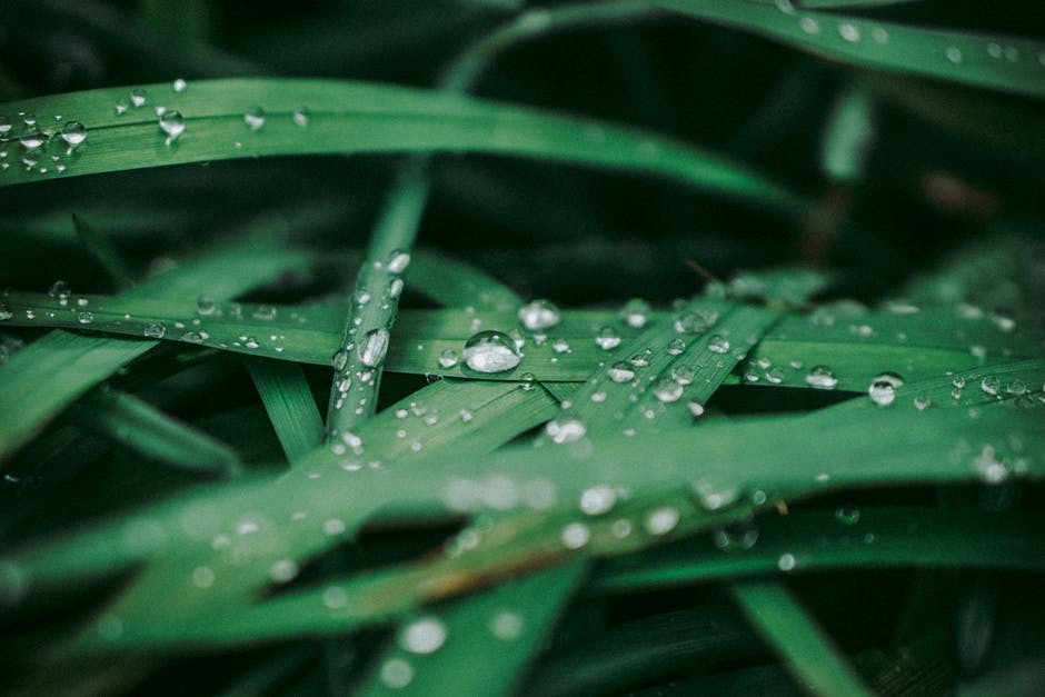 露珠在叶子上的特写照片 · 免费素材图片