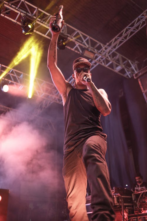 穿着拉链夹克的人在舞台上有音乐会 · 免费素材图片
