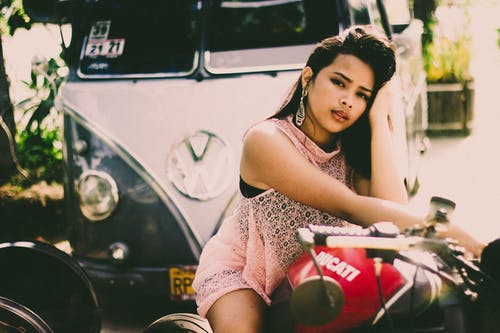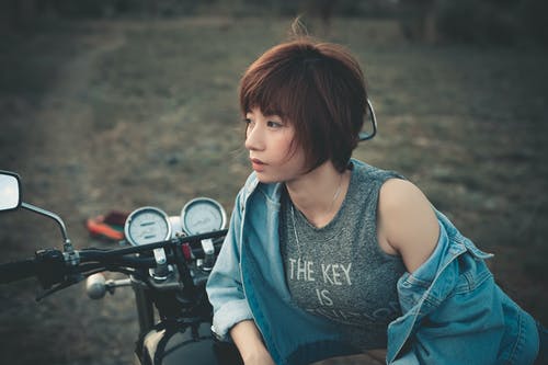女人坐在摩托车上的照片 · 免费素材图片