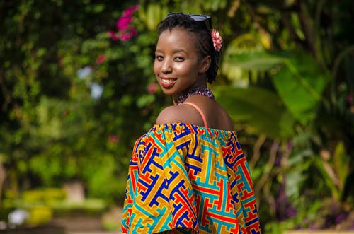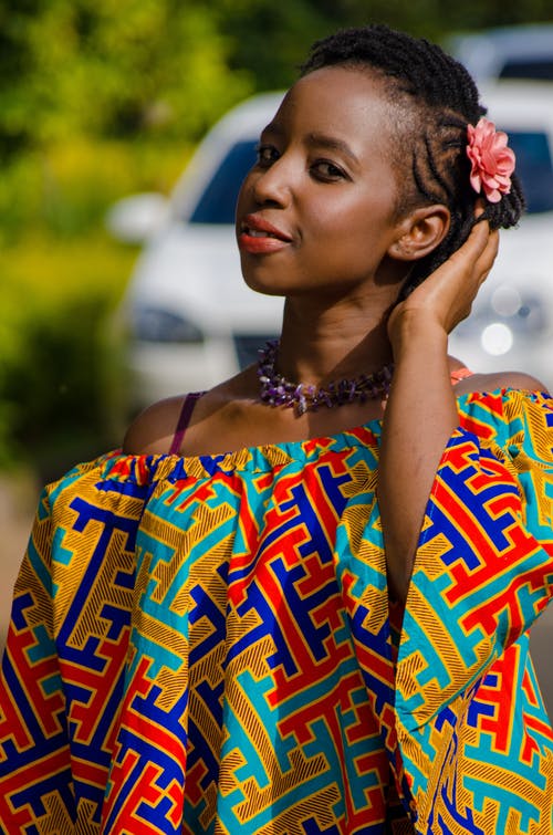 女人穿着五彩的管礼服微笑 · 免费素材图片