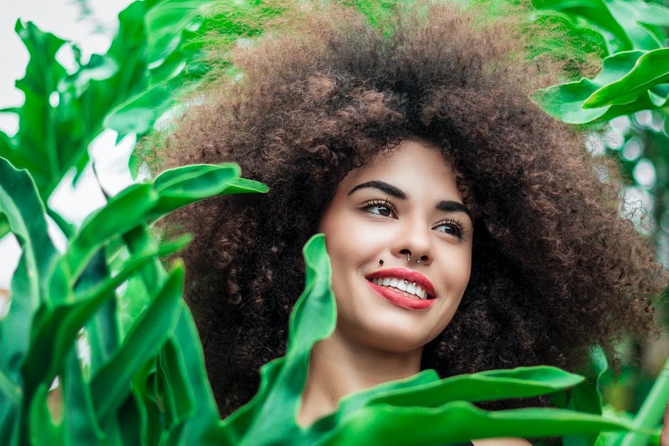 微笑在绿叶植物旁边的女人 · 免费素材图片