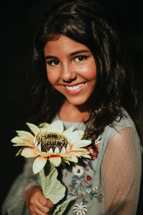 有关向日葵, 垂直拍摄, 女孩的免费素材图片