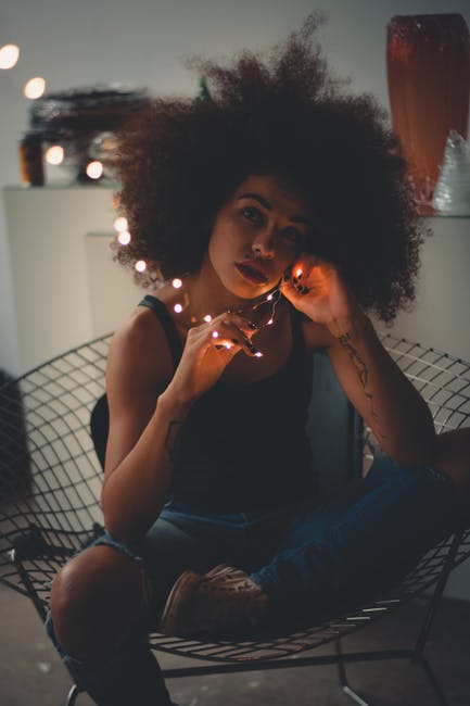 女人穿着黑色背心坐在灰色的金属椅子上 · 免费素材图片