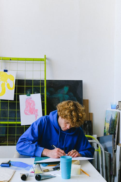 人在紫色礼品盒上绑丝带 · 免费素材图片