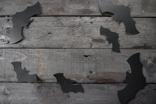 黑纸蝙蝠装饰木制的桌子上 · 免费素材图片