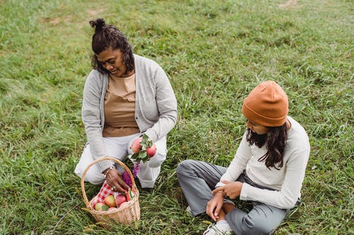 成熟的女人和女儿收集葡萄的丰收 · 免费素材图片