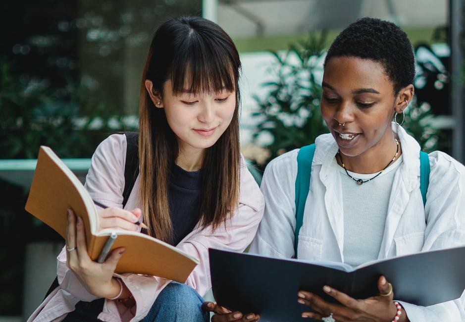 性格开朗的多民族女友与学习时进行交互的工作簿 · 免费素材图片