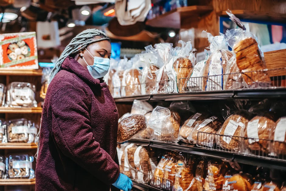 站在食品展示前的红色外套的女人 · 免费素材图片