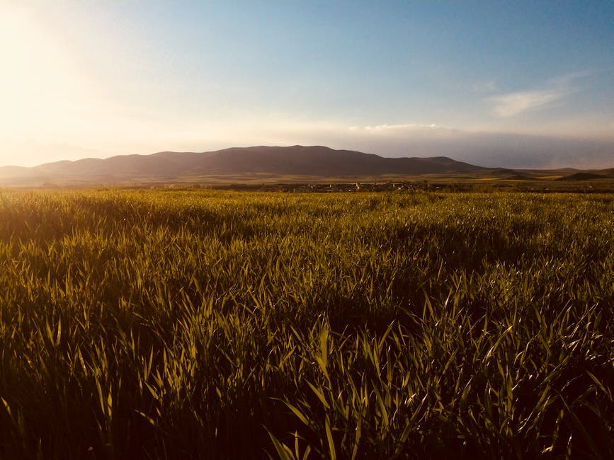 广阔的绿草田与远处山的轮廓 · 免费素材图片