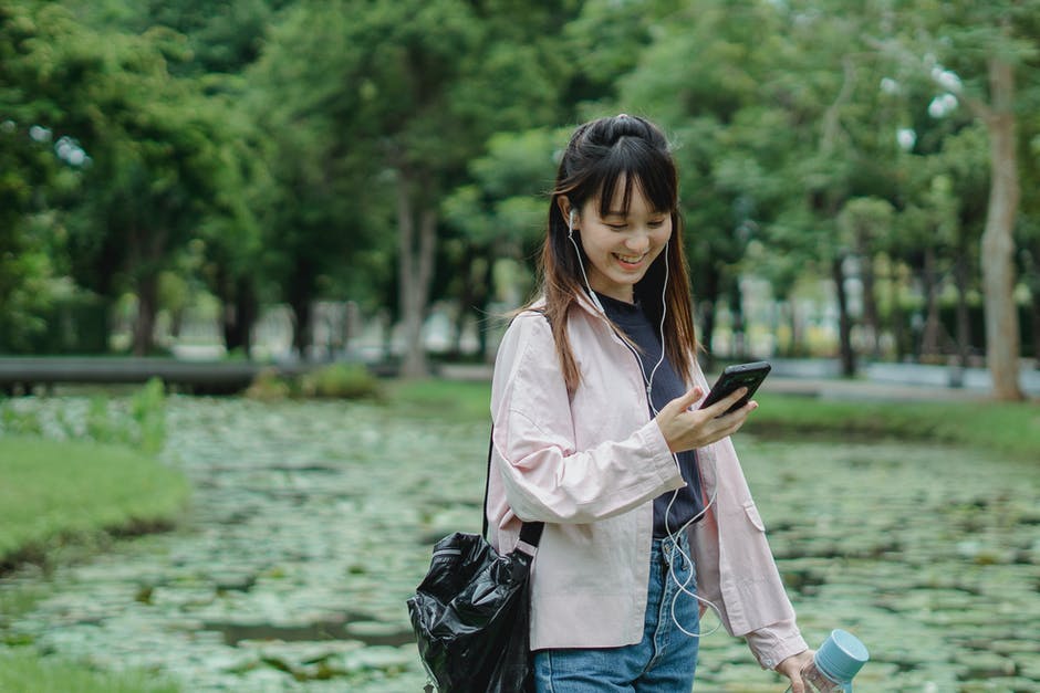 有智能手机和耳机的正面种族妇女 · 免费素材图片