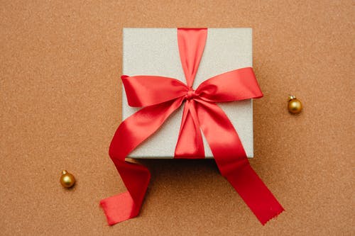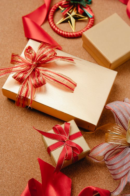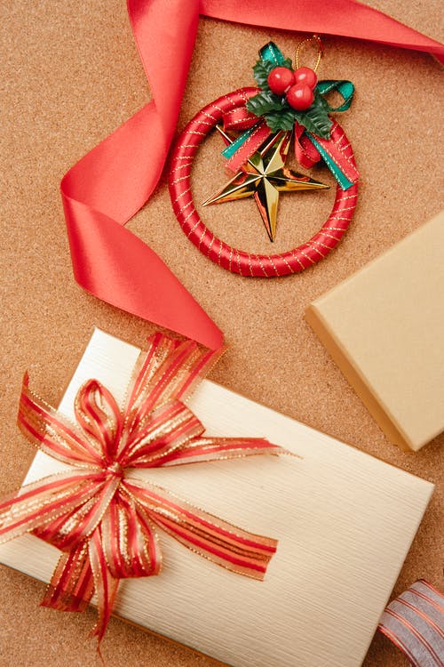 棕色盒子上的红丝带 · 免费素材图片