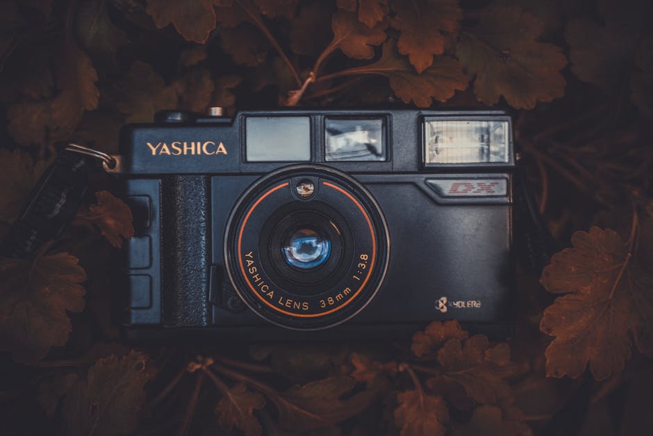 黑色yashica紧凑型胶片相机放在棕色的叶子上 · 免费素材图片