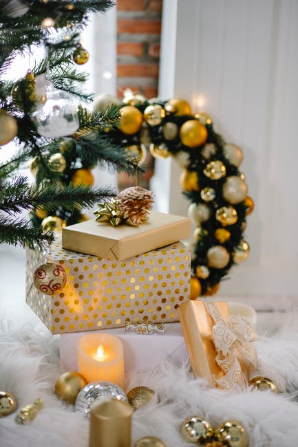 绿色圣诞树旁边的棕色和白色礼品盒 · 免费素材图片
