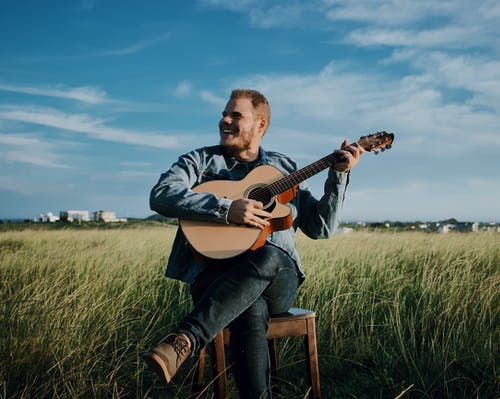 在崎terrain的地形上弹吉他的人 · 免费素材图片