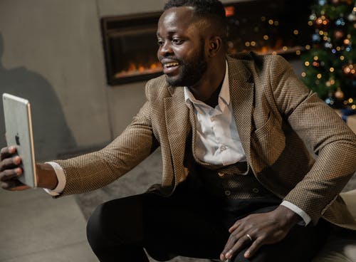 使用macbook坐在椅子上的白色圆领t恤和蓝色牛仔牛仔裤的男人 · 免费素材图片