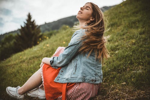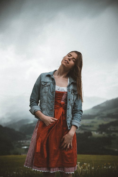 在重云下穿蓝色牛仔纽扣外套的女人 · 免费素材图片
