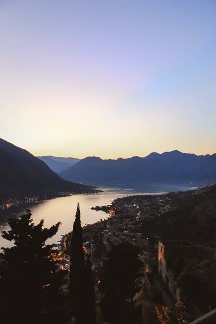 山脉附近的河附近的城市建筑 · 免费素材图片