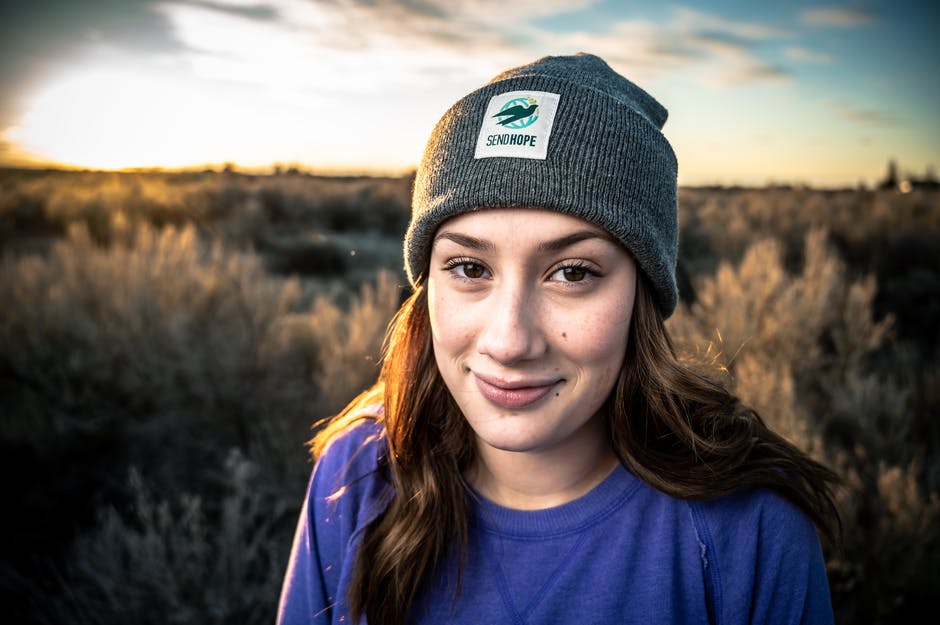 女人穿着蓝色衬衫和灰色豆豆 · 免费素材图片