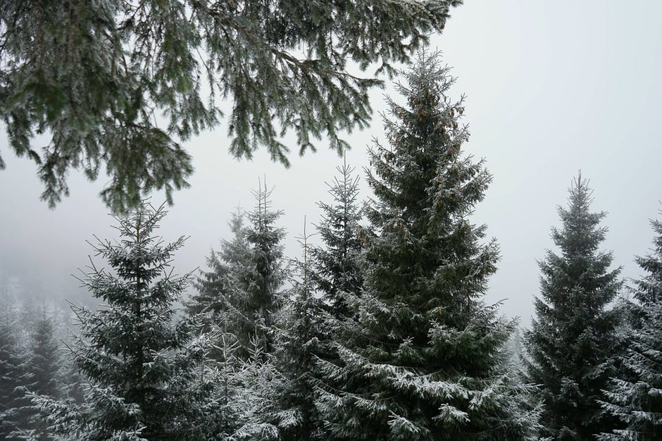 有关冷杉, 单色, 大雾天的免费素材图片