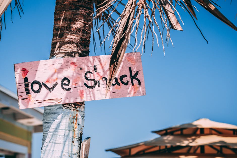 椰子树上的粉红色爱小吃标牌 · 免费素材图片