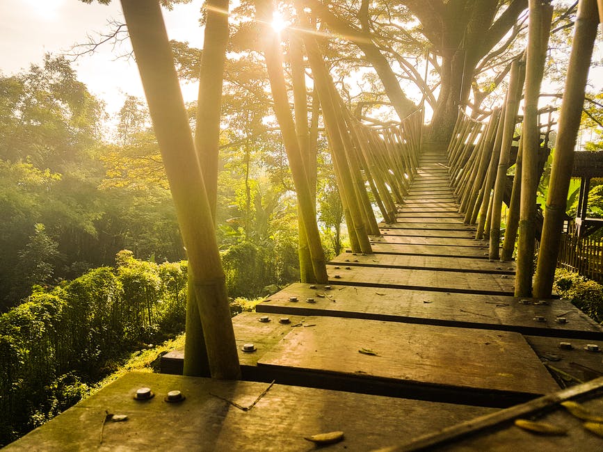 蓝蓝的天空下的棕色木桥 · 免费素材图片