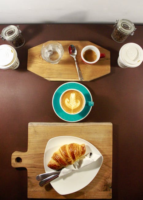 羊角面包板平躺的食物摄影 · 免费素材图片