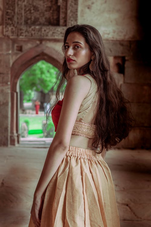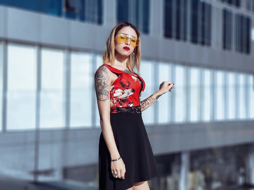 红色和黑色的花卉无袖连衣裙的女人 · 免费素材图片