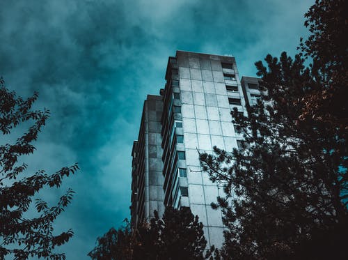 多云的天空下的混凝土高层建筑的低角度摄影 · 免费素材图片