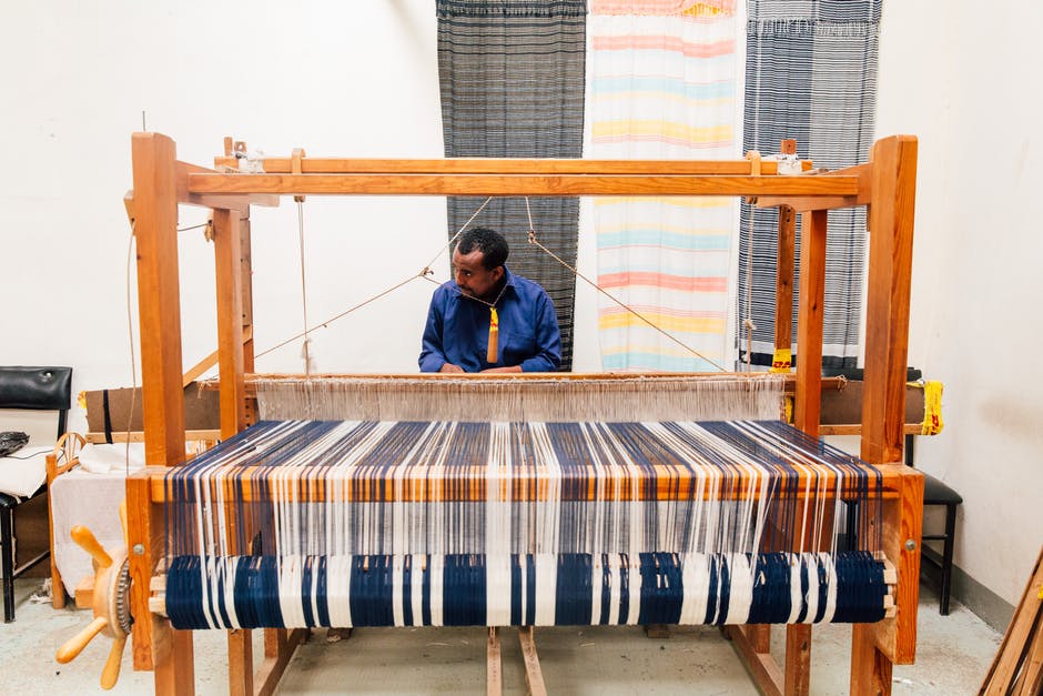 在车间的织布机上工作的民族工匠 · 免费素材图片
