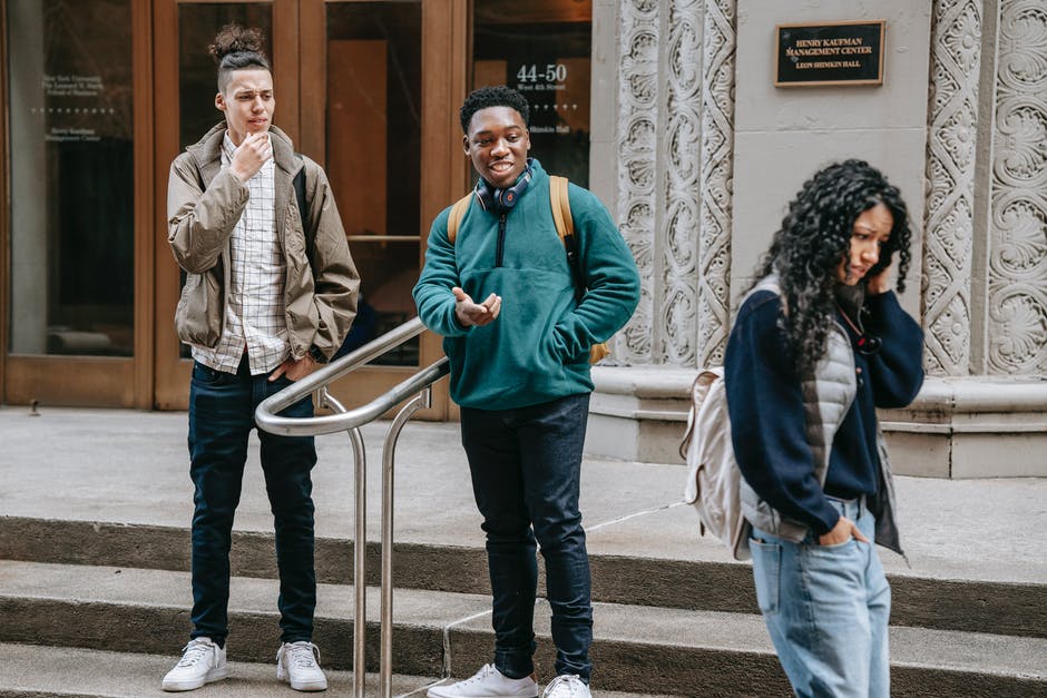 站在棕色外套的女人旁边的蓝色夹克的男人 · 免费素材图片