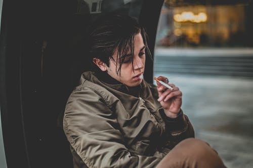 使用香烟的男人穿着棕色皮革拉链外套 · 免费素材图片