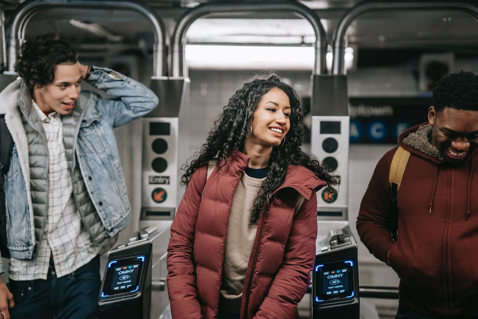 站在火车旁边的棕色皮夹克的女人 · 免费素材图片