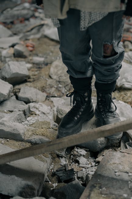 黑裤子和黑色皮靴,站在灰色的岩石上的人 · 免费素材图片
