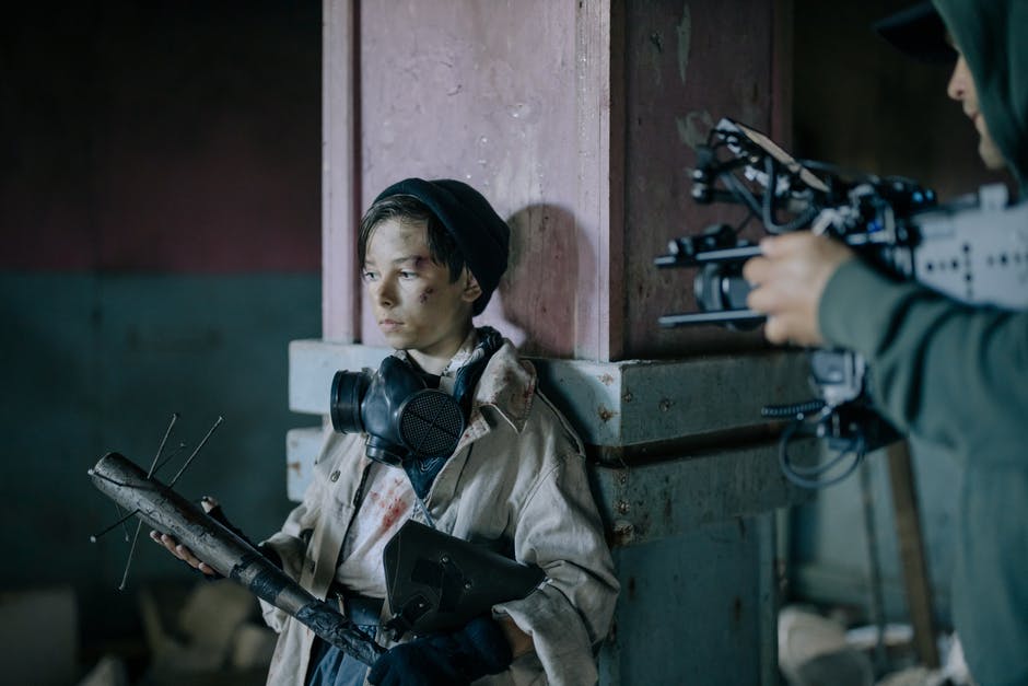 拿着黑色和灰色步枪的棕色夹克的男孩 · 免费素材图片