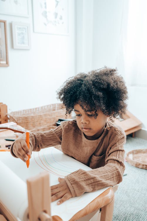 拿着白色和蓝色笔的灰色和白色毛衣的男孩 · 免费素材图片