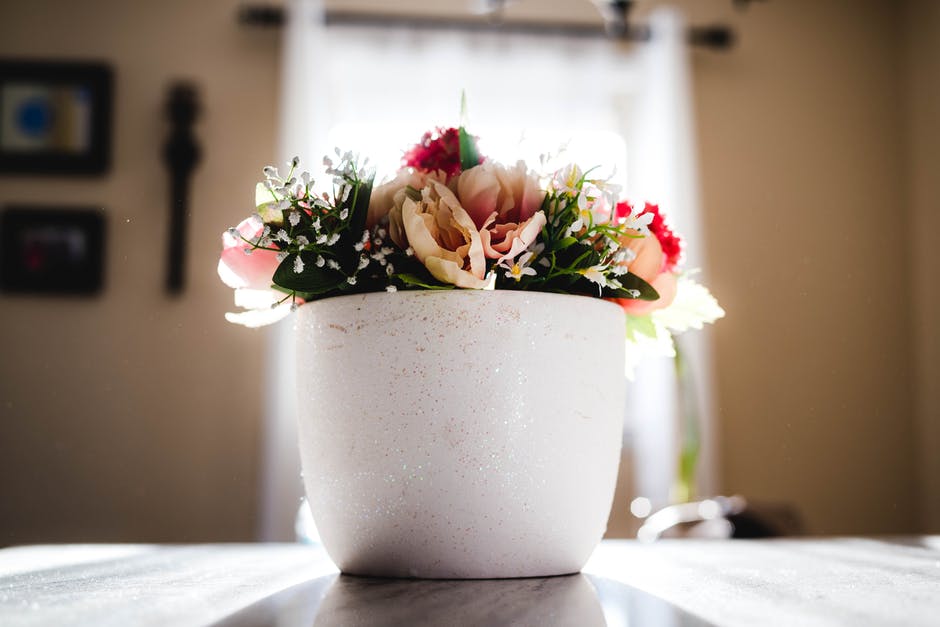 白色陶瓷花瓶里的什锦花 · 免费素材图片