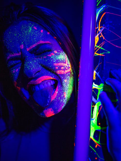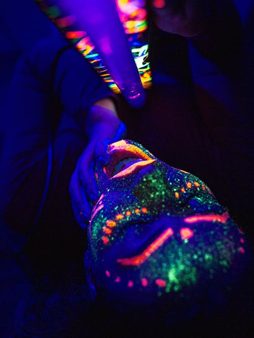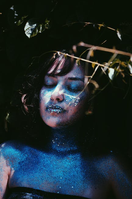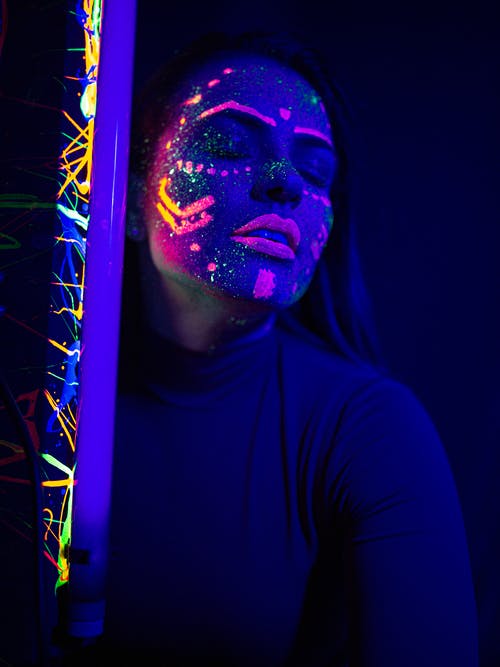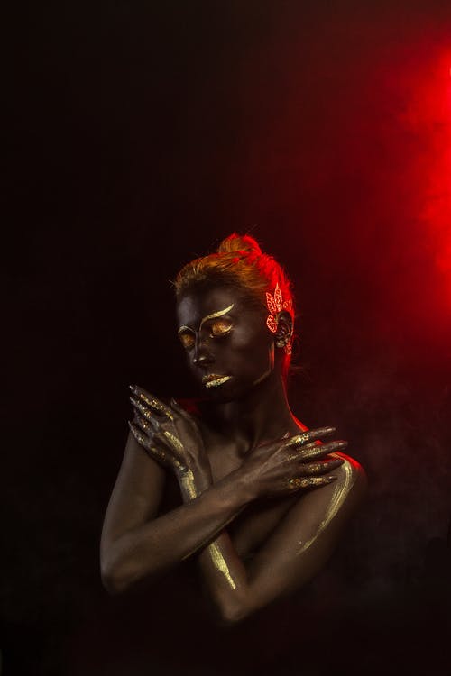 平静的女模特与闪闪发光的人体彩绘在工作室 · 免费素材图片