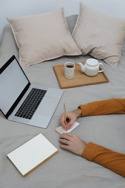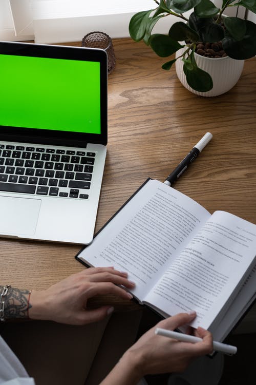 在macbook Air旁写白皮书的人 · 免费素材图片
